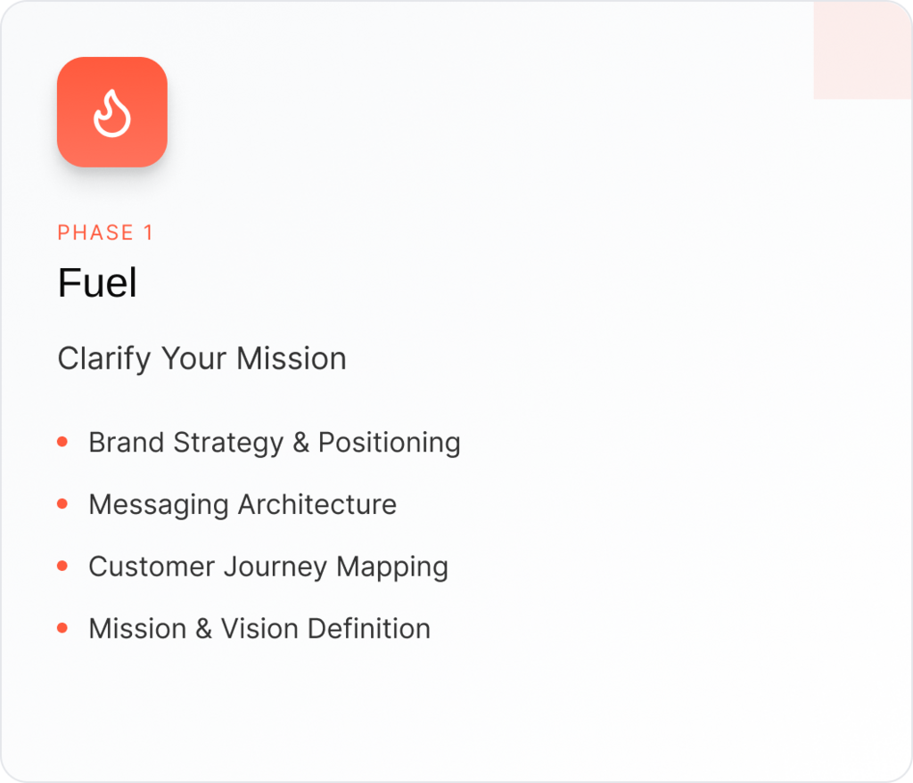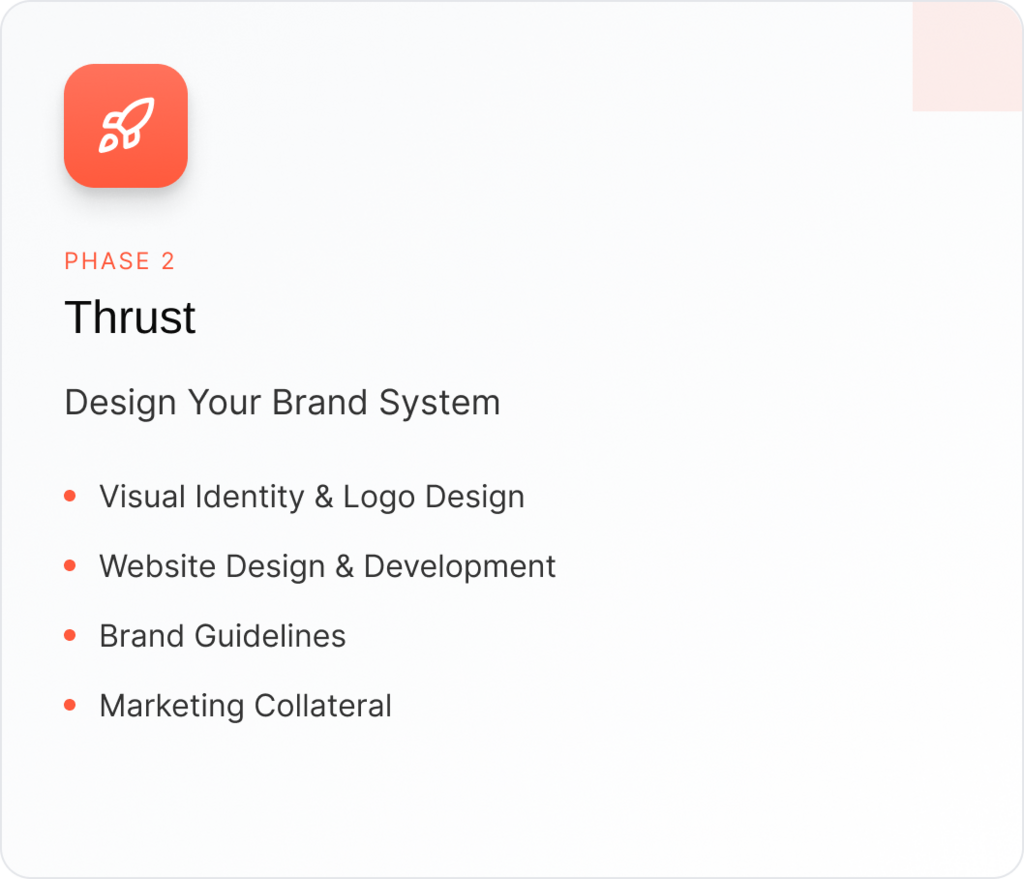 Each phase is designed to build on the last to create a compounding system of clarity, design, and momentum that propels your brand forward.